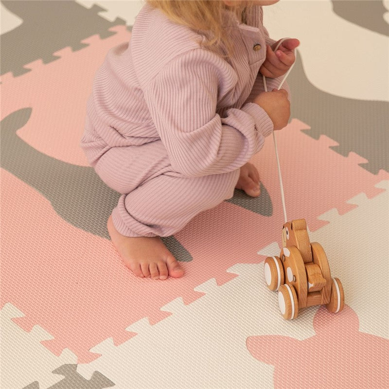 Sus tonos suaves en rosa, gris y blanco se integran perfectamente con la decoración del hogar, aportando un estilo nórdico y elegante. Los simpáticos animales recortados estimulan la curiosidad, la coordinación y la imaginación de los niños.