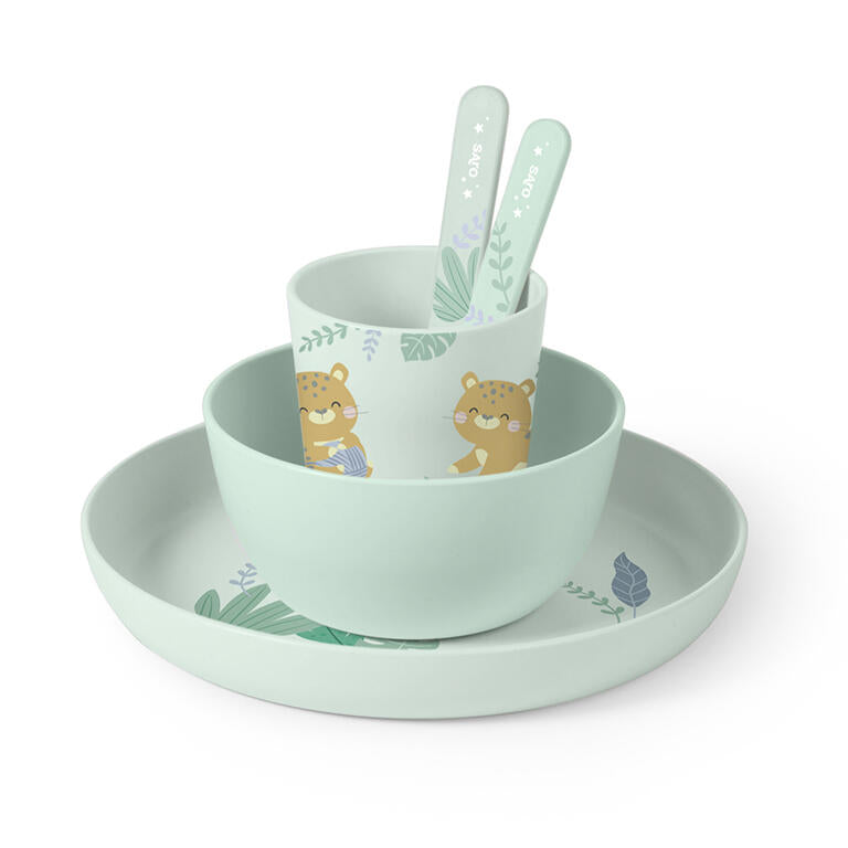 Vajilla 5 pzs. "Jungle Cheetahs" menta