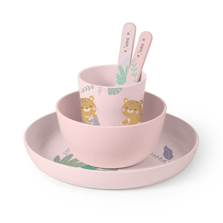 Vajilla 5 pzs. "Jungle Cheetahs" rosa