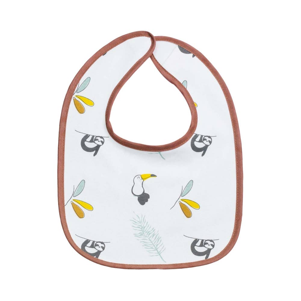 Cada babero cuenta una historia colorida, con adorables perezosos y tucanes exóticos, para alegrar las comidas. Nunca tendrás suficientes baberos, así que opta por este conjunto que se usará durante toda la semana.