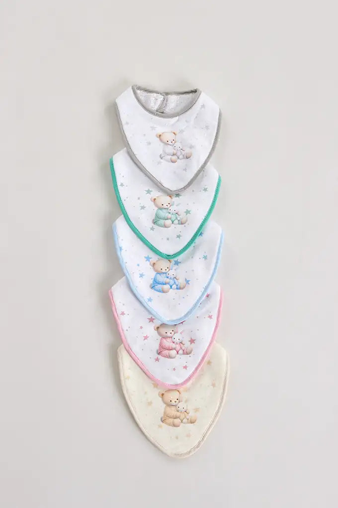 Babero de rizo tipo bandana - osito con peluche