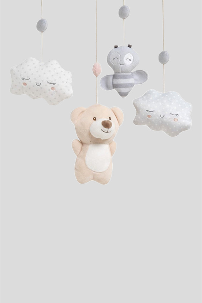 Carrusel musical modelo ositos, las suaves figuras giran suavemente al ritmo de la melodía. Los peluches se desmontan y puedes utilizarlos de forma independiente. La caja de música dispone de un sistema que permite detener la melodía.