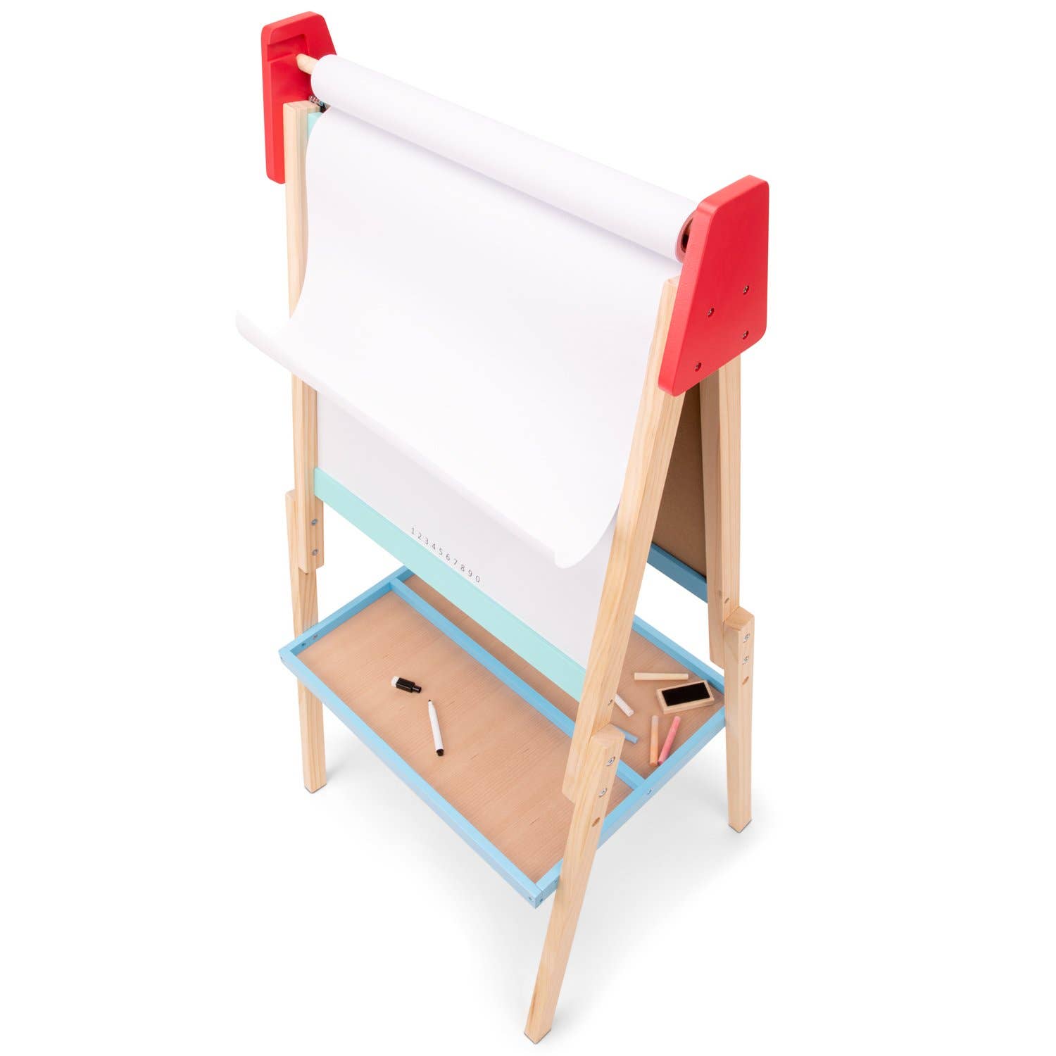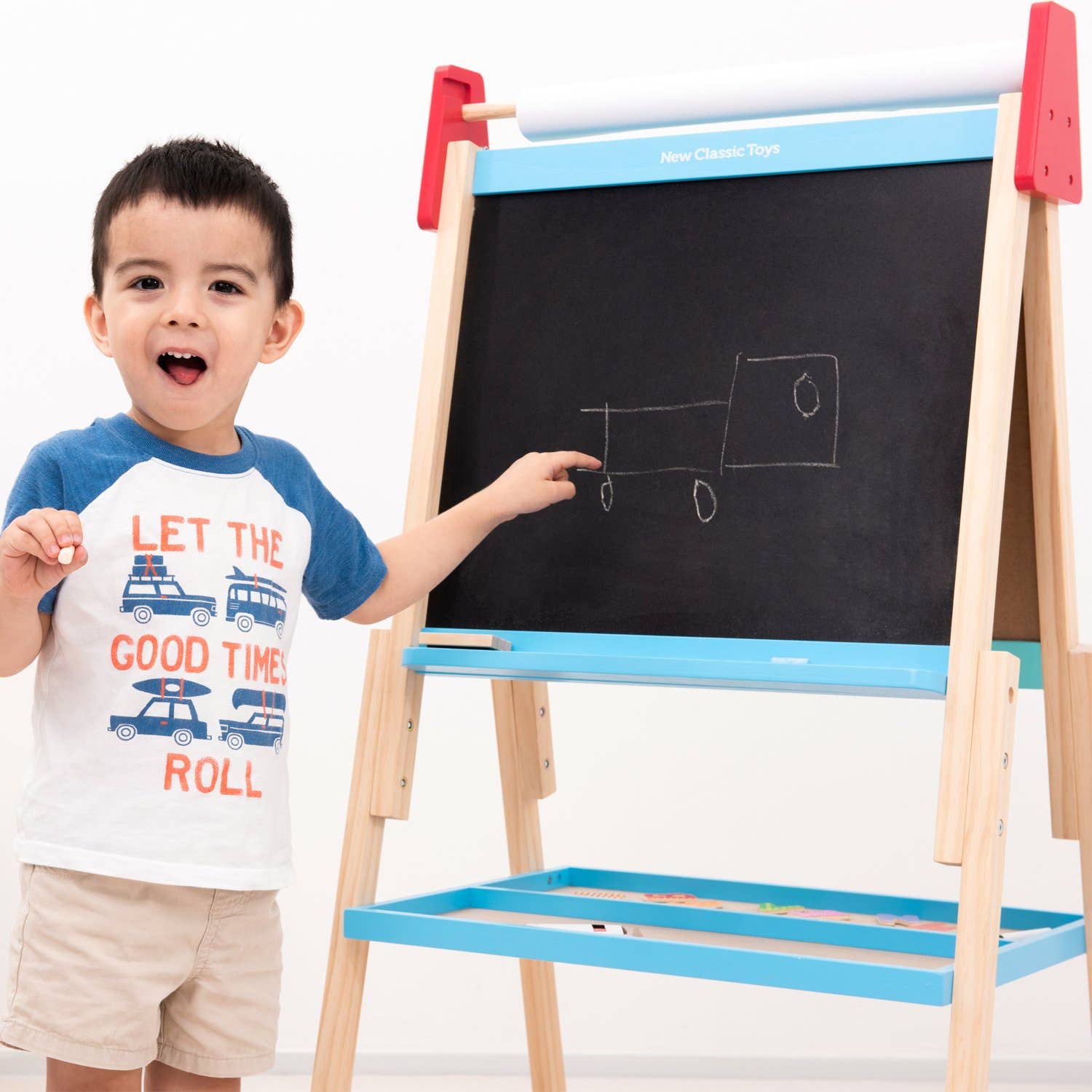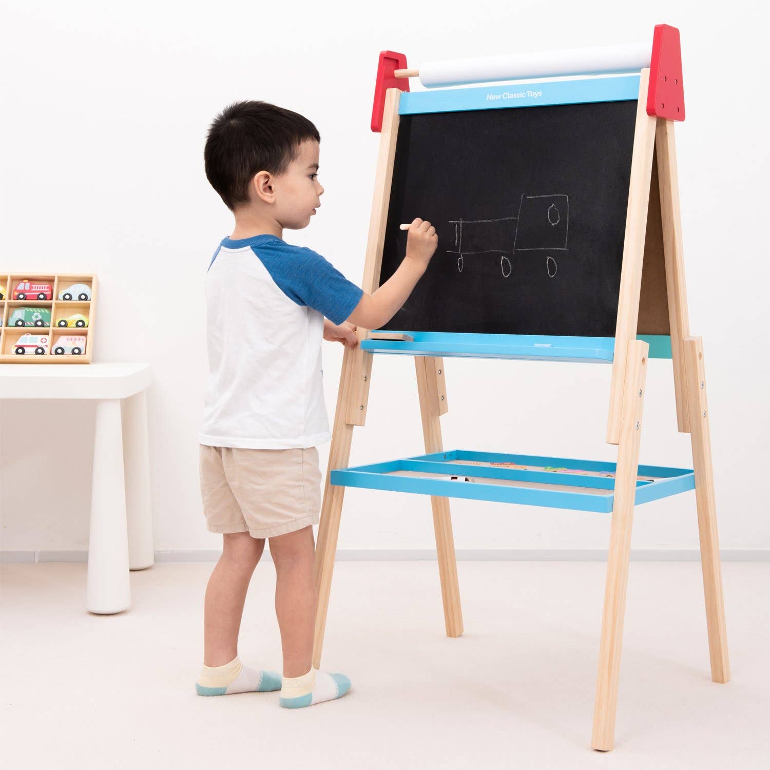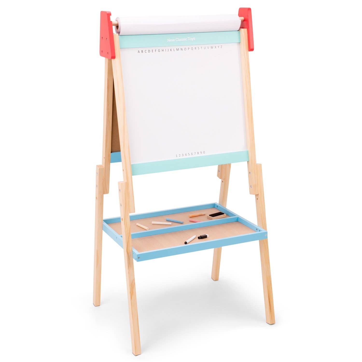 Estimule la imaginación y la creatividad de su hijo con este versátil caballete de New Classic Toys. Los niños pueden dibujar, garabatear, pintar o escribir a su antojo. Este caballete de altura ajustable es una gran herramienta para artistas jóvenes, ya que incluye una pizarra para dibujar y escribir, una pizarra magnética y un rollo de papel para crear obras maestras. Con 5 crayones, una goma de borrar y un rotulador, este caballete tiene todo lo que su hijo necesita para ser creativo. No solo promueve horas de diversión, sino también el crecimiento y el desarrollo de tu pequeño. Estimula la autoexpresión, la creatividad y la imaginación, lo que permite a su hijo descubrir y expresar cosas nuevas. Imprescindible en cualquier sala de juegos, inspira a los niños a explorar el hermoso mundo del arte y a desarrollarse. El caballete es ajustable en alturas de 110 a 114,5 cm.