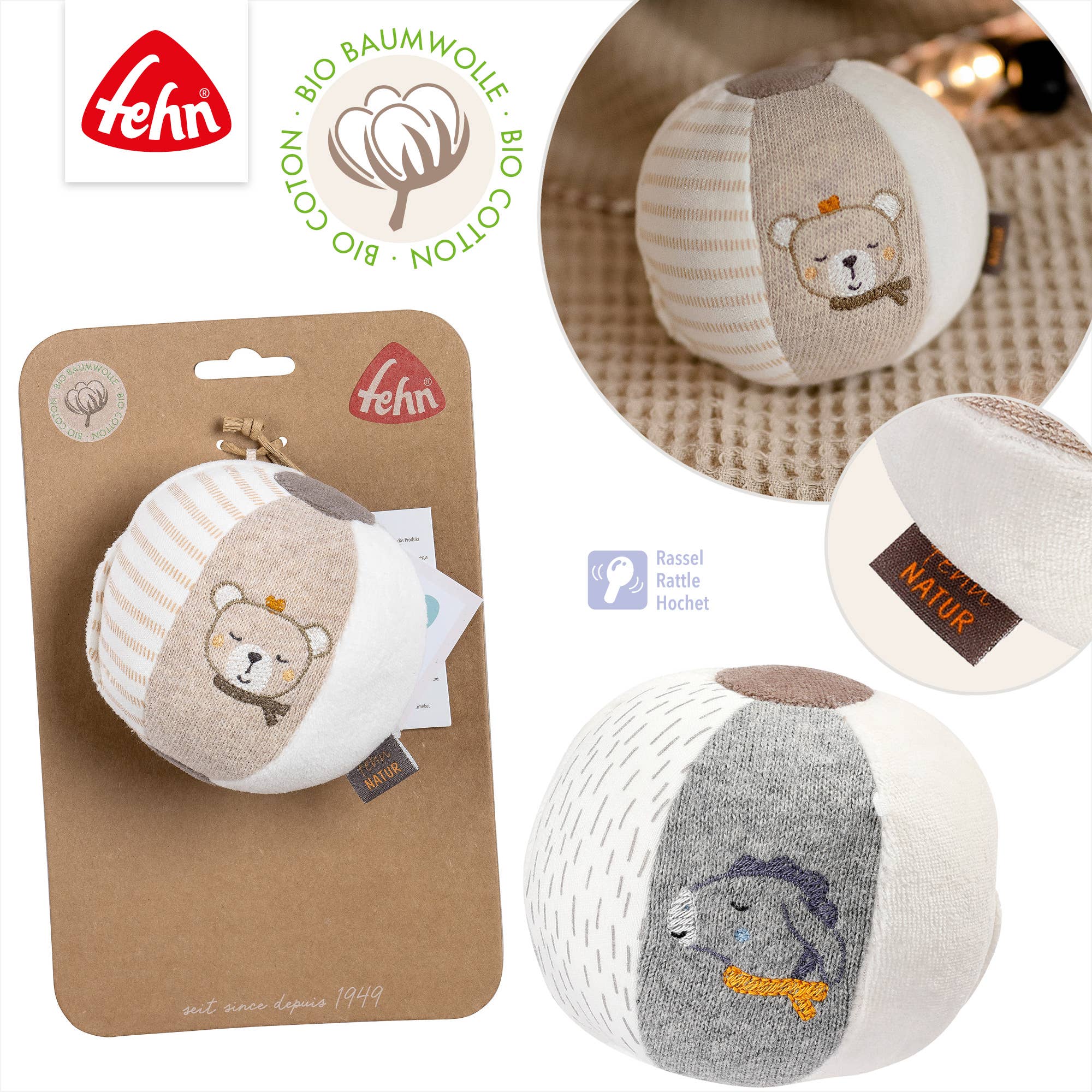 Pelota de tela Donkey & Teddy Nature