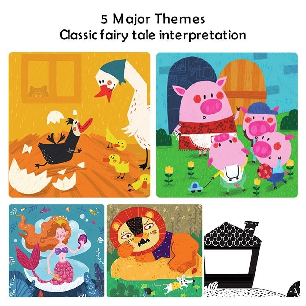 Este set de teatro de sombras Jarmelo con linterna invita a compartir momentos tranquilos y mágicos a través de la narración de cuentos, creando un ritual especial antes de dormir.