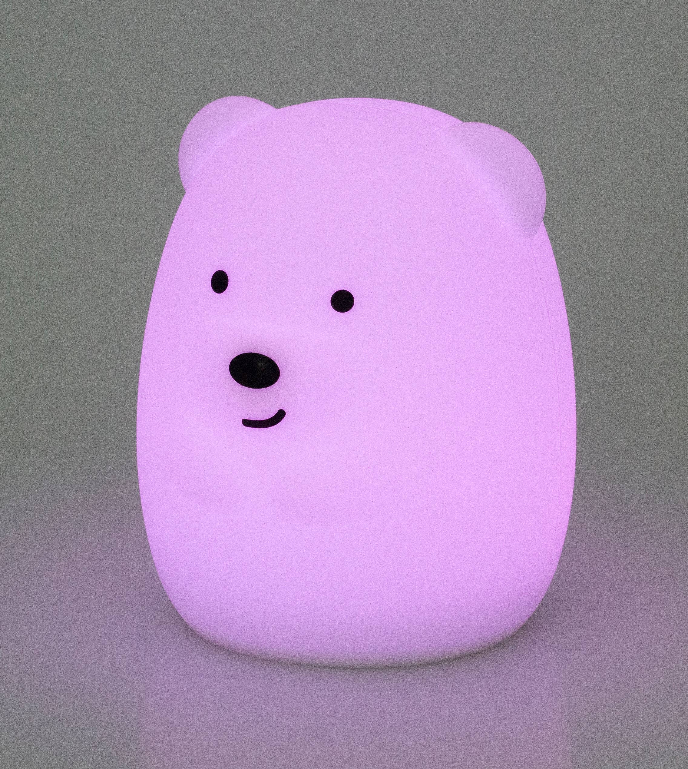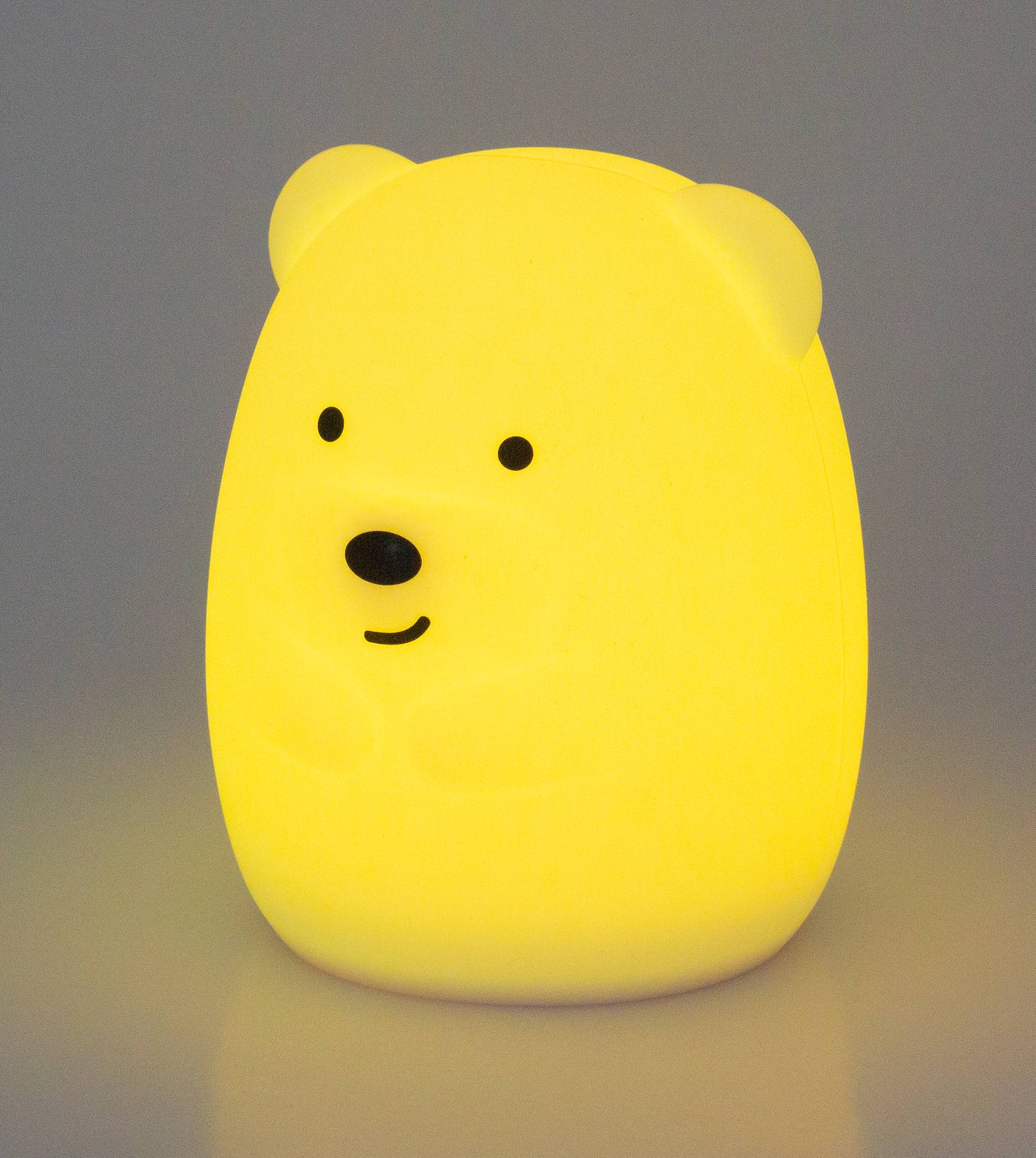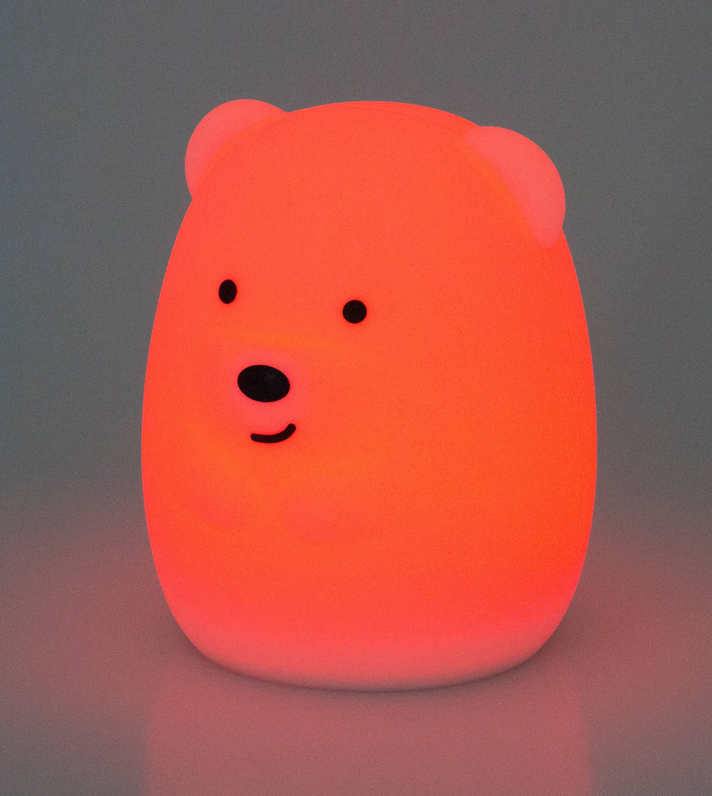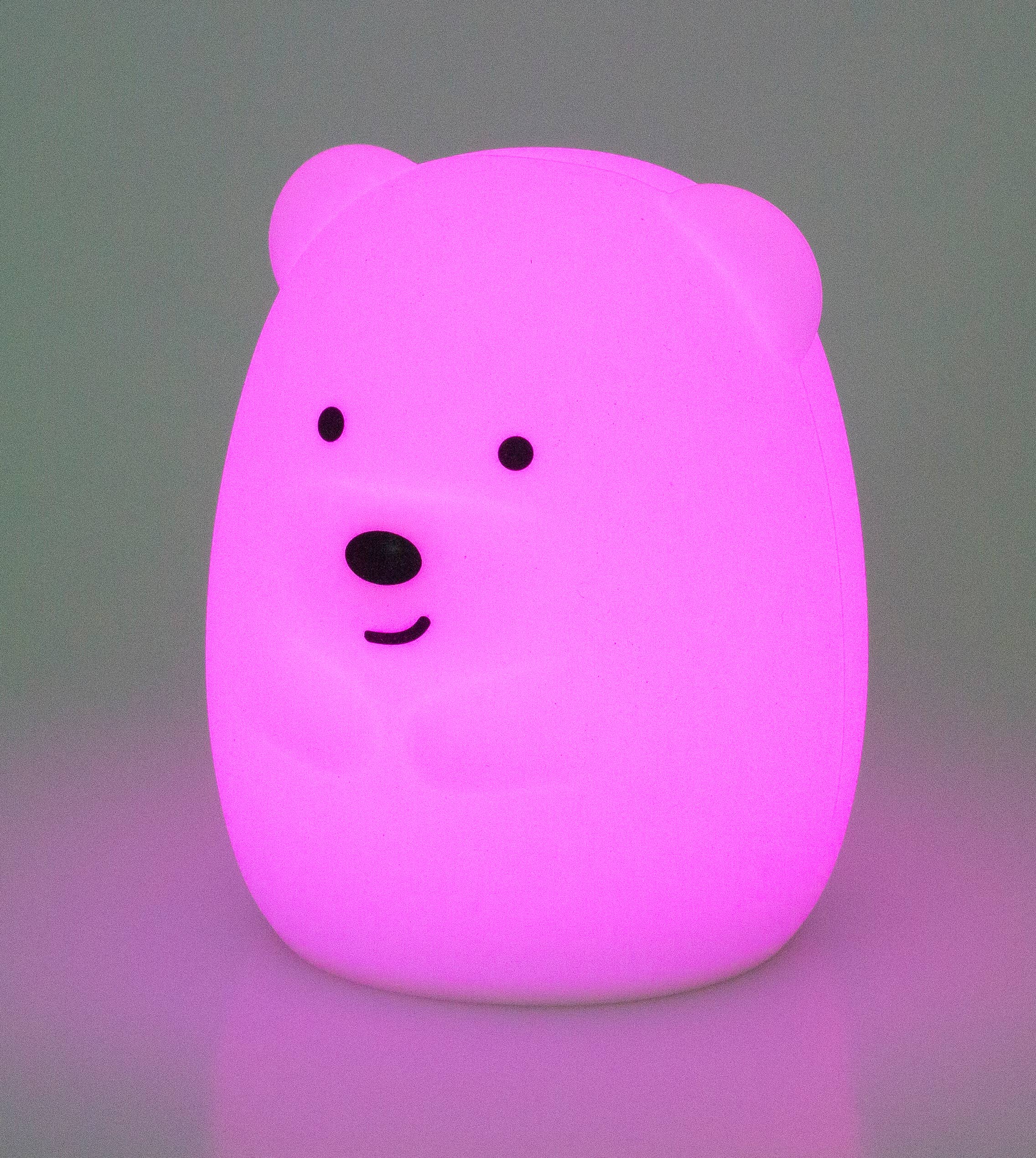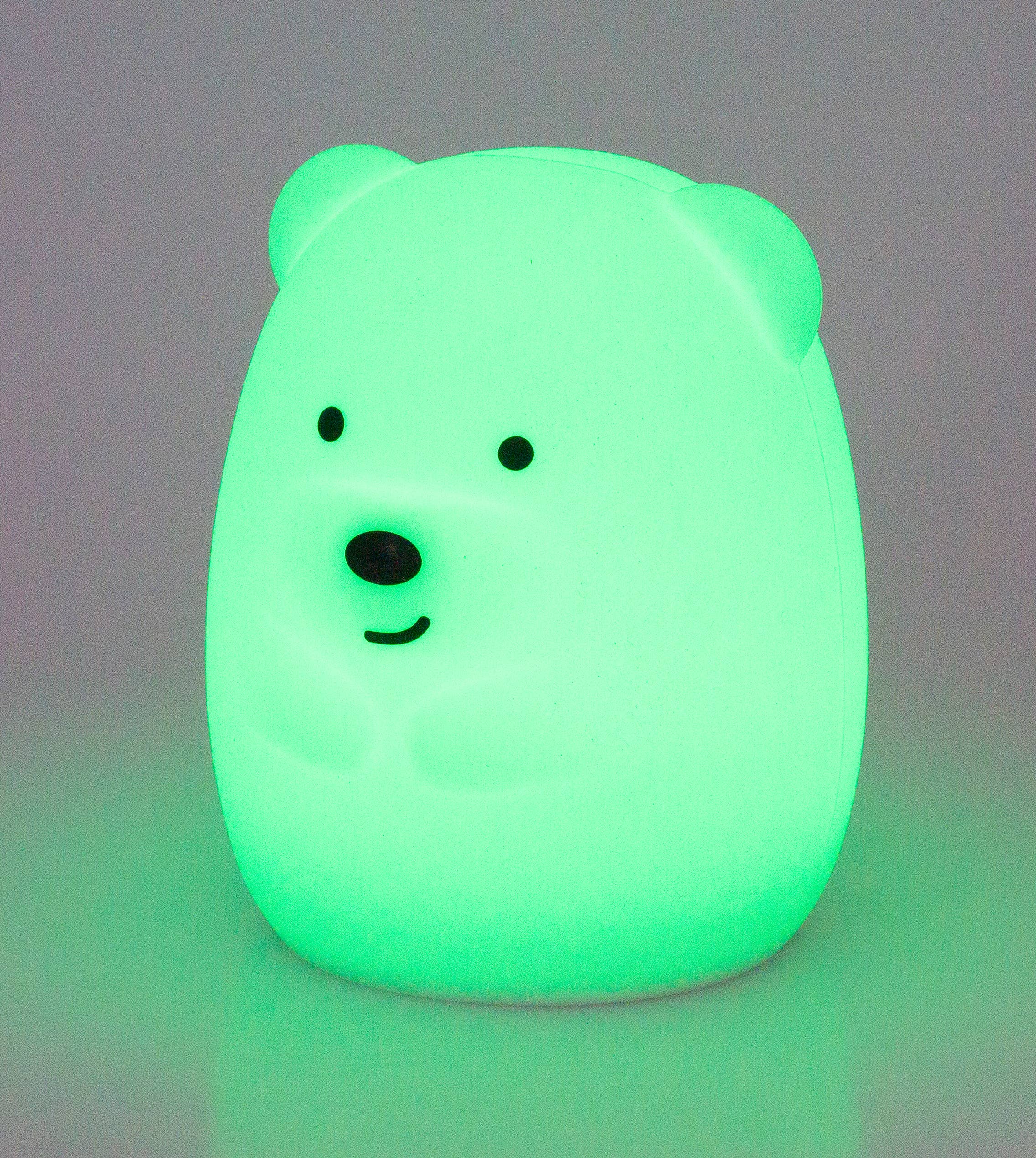 Luz nocturna de silicona, sin ftalatos ni BP. Las variaciones de luz se realizan de 3 modos y 8 colores diferentes, se puede cambiar o bien con el mando a distancia o bien simplemente "tocando" la luz.