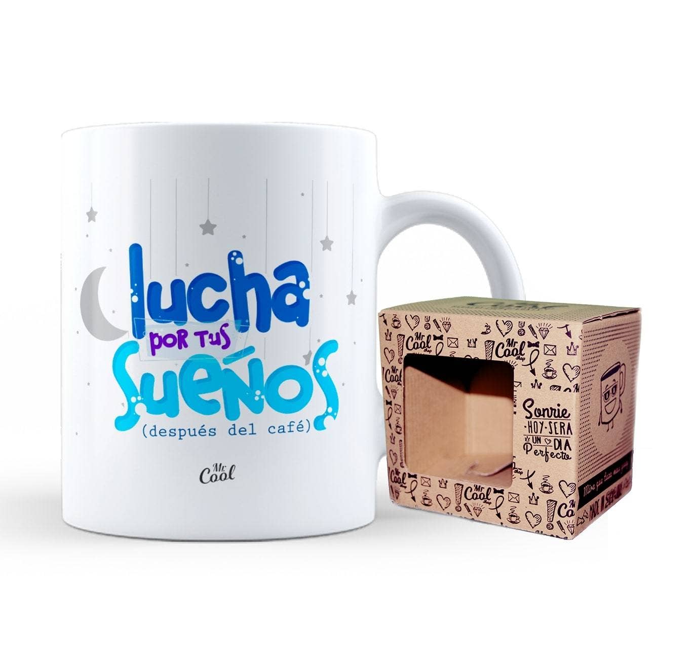 Taza con frases originales marca Mr. Cool, en cerámica de alta calidad y blanco brillante, apta para el microondas y el lavavajillas.