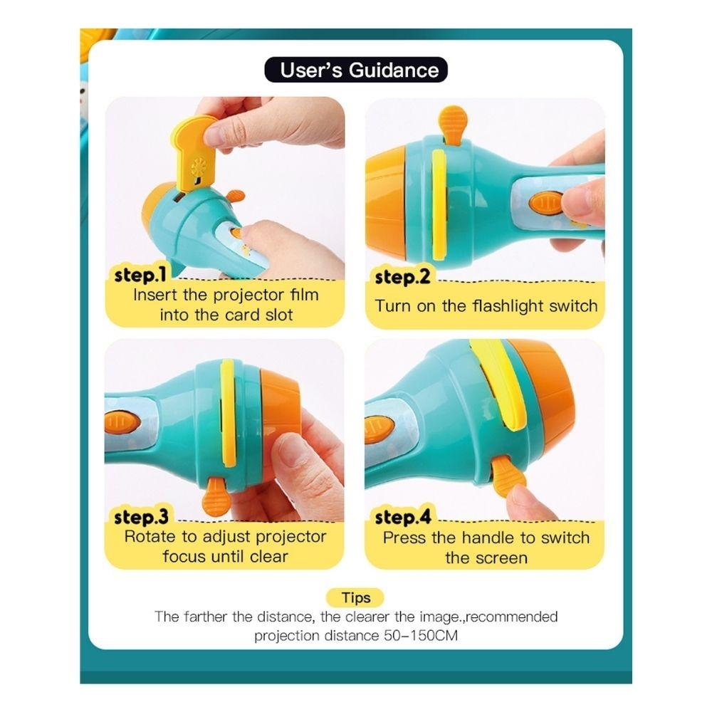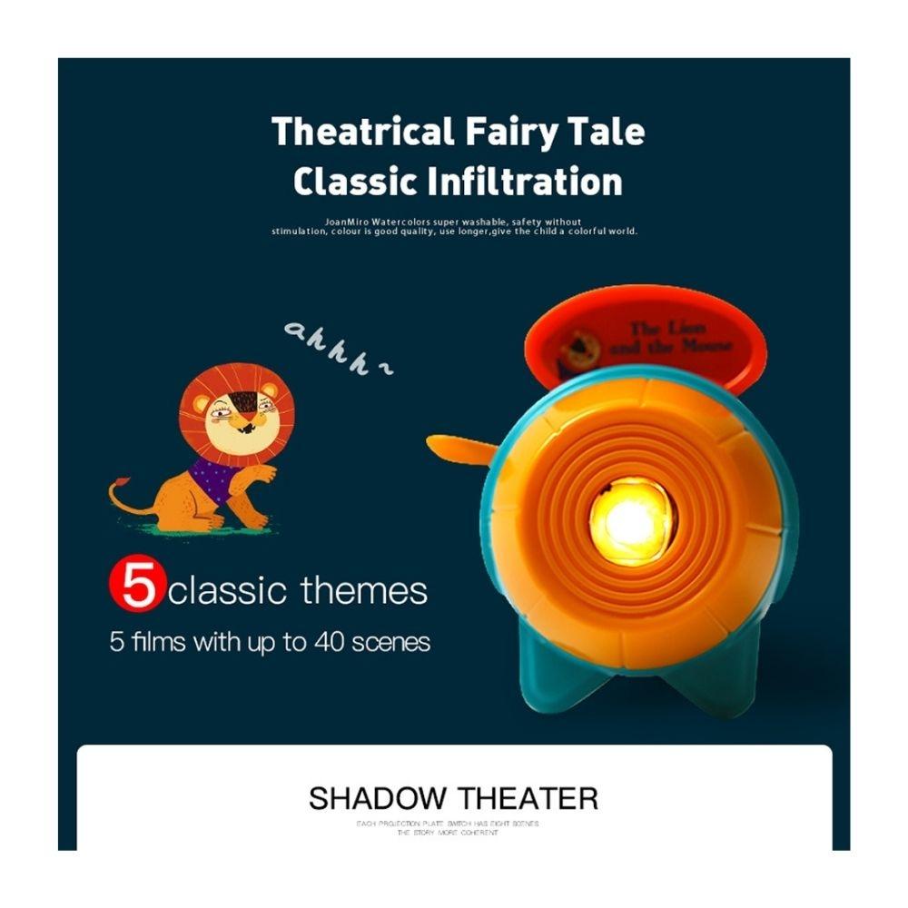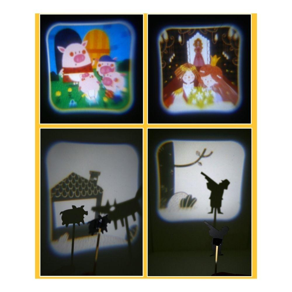 El proyector con linterna permite reproducir distintas historias al insertar los discos de cuentos, proyectando las imágenes sobre la pared o sobre el teatro incluido. Las escenas cobran vida con una luz suave que envuelve el espacio y estimula la imaginación, favoreciendo un ambiente de calma y atención compartida.