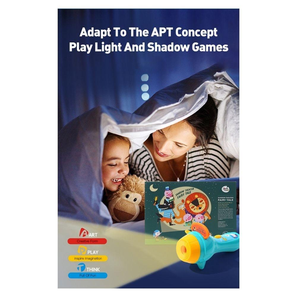 Este set de teatro de sombras Jarmelo con linterna invita a compartir momentos tranquilos y mágicos a través de la narración de cuentos, creando un ritual especial antes de dormir.